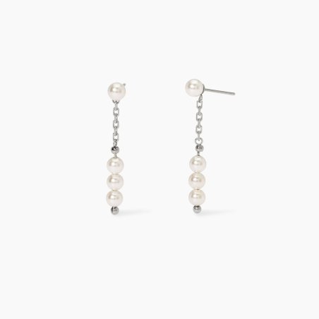 Orecchini in acciaio 316L con perle conchiglia e catena diamantata di Kidult.