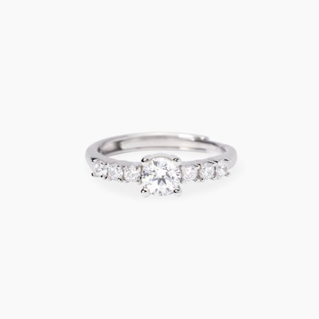 Anello in argento 925 rodiato con zirconi, misura regolabile.