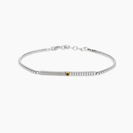 Scopri il Bracciale in Argento 925 di Mabina, un gioiello raffinato e versatile. Realizzato con catena Veneta da 2 mm, presenta una placca centrale lucida e placcata in oro 18K, impreziosita da un zircone nero di Ø 1.75 mm. La lunghezza è regolabile da 19 a 21 cm, garantendo una vestibilità perfetta. Questo bracciale è l'accessorio ideale per aggiungere un tocco di eleganza al tuo look quotidiano o per occasioni speciali.