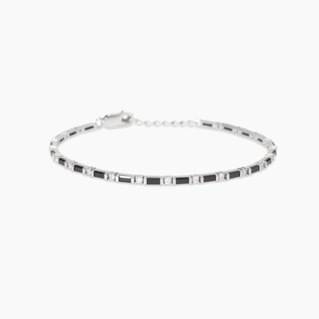 Bracciale Tennis in argento 925 con zirconi neri e bianchi, lunghezza regolabile.