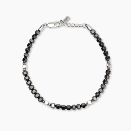 Bracciale in argento 925 rodiato con ematite faccettata, lunghezza regolabile.