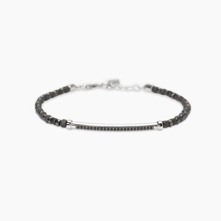 Bracciale in argento 925 con ematite e zirconi neri, lunghezza regolabile.