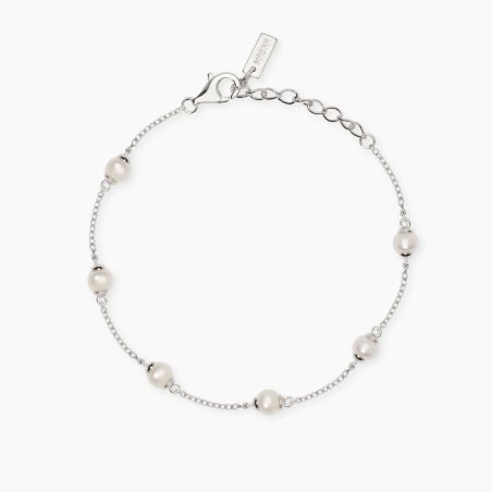 Bracciale in argento 925 rodiato con perle coltivate e catena Rolò.