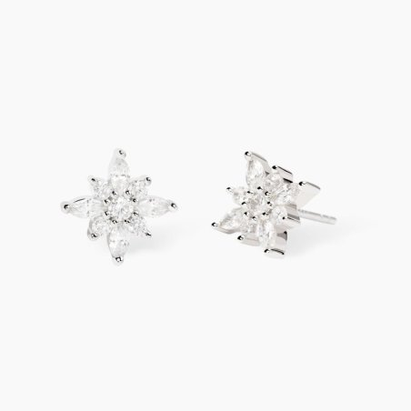 Orecchini in argento 925 rodiato con zirconi e design stella polare.