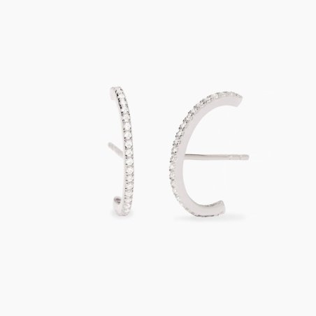 Orecchini in argento 925 rodiato con zirconi, lunghezza 2 cm.