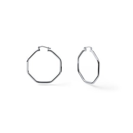 Orecchini a cerchio ottagonale in bronzo argentato, eleganti e versatili.