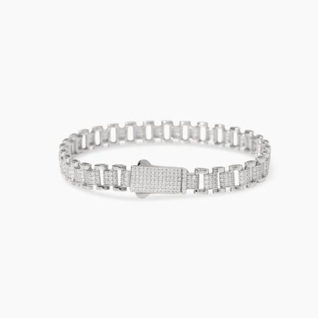 Bracciale in argento 925 rodiato con zirconi e elementi imperniati.