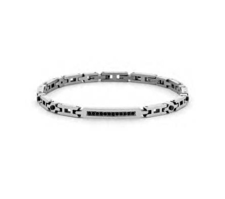 Bracciale da uomo in acciaio con targhetta e zirconi neri, regolabile.