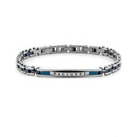 Bracciale Uomo 4Us Cesare Paciotti in acciaio e ceramica blu, elegante e regolabile.
