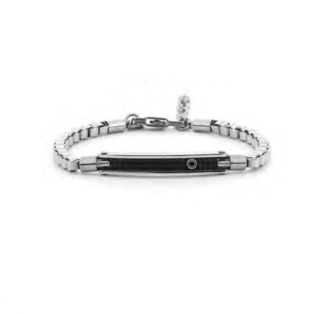 Scopri il bracciale da uomo della rinomata marca 4US Cesare Paciotti. Questo elegante accessorio è realizzato in acciaio inossidabile, con una catena a maglia fisarmonica lucida. Al centro del bracciale, una targhetta nera impreziosita da uno zircone nero incastonato aggiunge un tocco di raffinatezza. La lunghezza del bracciale è regolabile tra 18 cm e 21 cm grazie agli anellini di longhina, garantendo una vestibilità perfetta. La chiusura a moschettone assicura praticità e sicurezza. Perfetto per l'uomo moderno che ama distinguersi con stile.