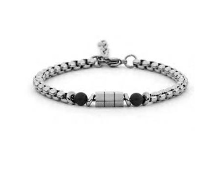 Bracciale Uomo in acciaio con pietre Onyx, lunghezza regolabile e chiusura a moschettone.