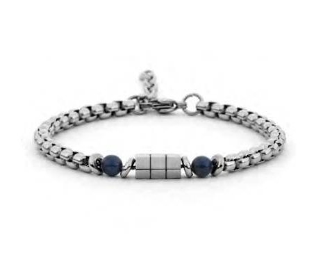 Il Bracciale da Uomo della marca 4US Cesare Paciotti è un accessorio elegante e versatile, perfetto per ogni occasione. Realizzato in acciaio inossidabile, presenta una catena a maglia forzatina con un barilotto rigido e dettagli in pietre blu che aggiungono un tocco di colore e raffinatezza. La lunghezza del bracciale è regolabile tra 18,5 cm e 22,5 cm, grazie alla pratica catena di allungo, permettendo una vestibilità personalizzata. La chiusura con maglia a moschettone garantisce sicurezza e praticità. Questo bracciale è l'ideale per l'uomo moderno che ama distinguersi con stile.