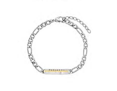 Bracciale da uomo in acciaio con targhetta e finitura oro pvd, regolabile e sicuro.