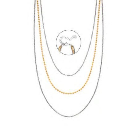 Collana da donna 4Us Cesare Paciotti in acciaio con tre fili bicolore e lunghezza regolabile.