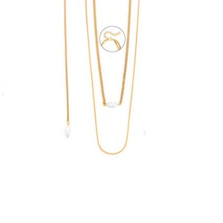La collana da donna 4US Cesare Paciotti è un elegante accessorio realizzato in acciaio inossidabile. Questo girocollo presenta una catena a due fili con maglie diverse: una maglia veneziana piccola e una maglia groumette, arricchita da una perla centrale di 10 mm. La lunghezza della prima collana è di 40 cm, mentre la seconda misura 45 cm, con un filo posteriore di 27 cm. Grazie alla catena di allungo, le lunghezze possono essere estese di ulteriori 5 cm. La chiusura è pratica e sicura, con maglia a moschettone.