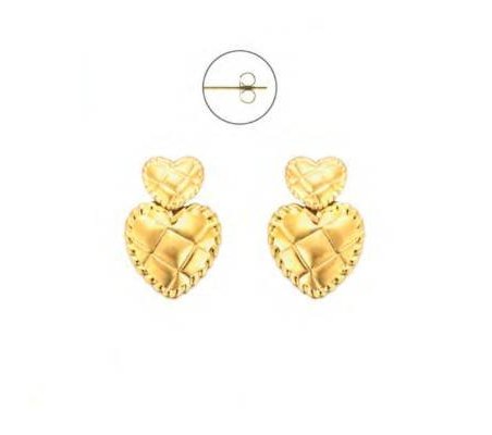 Eleganti orecchini a cuore in acciaio con finitura PVD oro, firmati 4Us Cesare Paciotti.