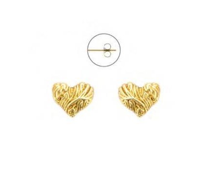 Orecchini a cuore in acciaio con finitura PVD oro, chiusura a farfallina.