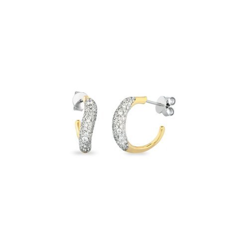 Orecchini cerchietto in argento dorato con zirconi bianchi, eleganza e luce.