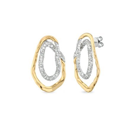 Scopri l'arte dell'imperfezione perfetta con gli orecchini doppio cerchio di Sogni. Questi orecchini celebrano la bellezza delle forme organiche, dove ogni curva racconta una storia di eleganza naturale. Il design asimmetrico e fluido cattura l'essenza della modernità, mentre il contrasto tra oro caldo e zirconi brillanti crea un gioco di luci che incanta ad ogni movimento. Realizzati in argento 925, con micro pavé di zirconi bianchi e placcatura in oro giallo 18kt, questi orecchini sono un accessorio indispensabile per chi ama distinguersi con stile.