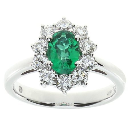 Anello Damiani in oro bianco con diamante e smeraldo, taglio ovale.