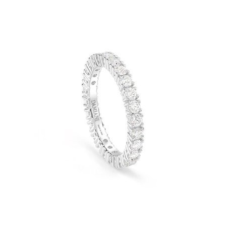 La veretta in oro bianco con diamante di Damiani è un gioiello elegante e raffinato. Realizzata con un diamante dal taglio rotondo, presenta una caratura di 1.3 e un colore GH, con purezza VVS-VS. Perfetta per occasioni speciali o come simbolo di un legame eterno, questa veretta unisce la tradizione orafa italiana con un design moderno e sofisticato.