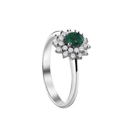 Anello in oro bianco con diamante e smeraldo di Salvini, eleganza pura.