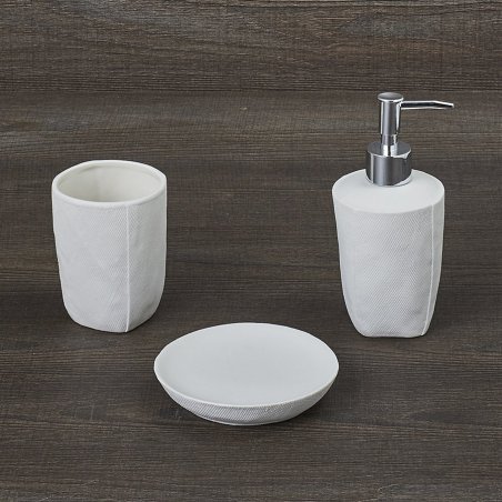 Set bagno 3 pezzi in porcellana bianco di Henriette, collezione Memory.