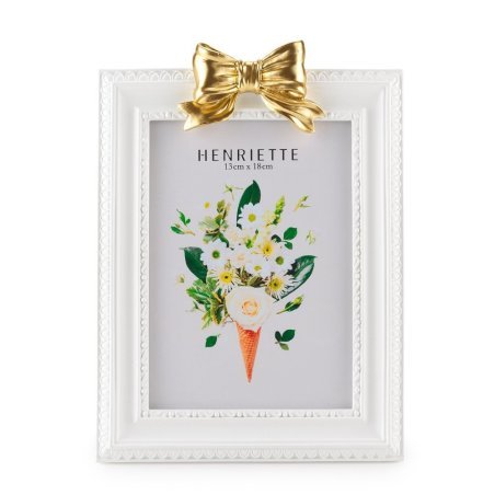 Cornice Bow Bianco/Oro di Henriette, decorazione versatile in resina.