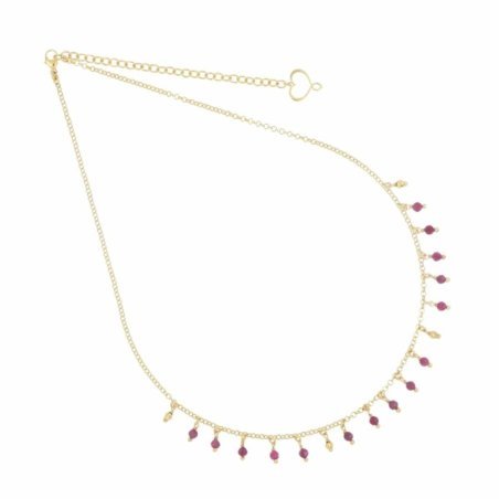 Girocollo in argento 925 con rubini e placcatura oro, regolabile e elegante.