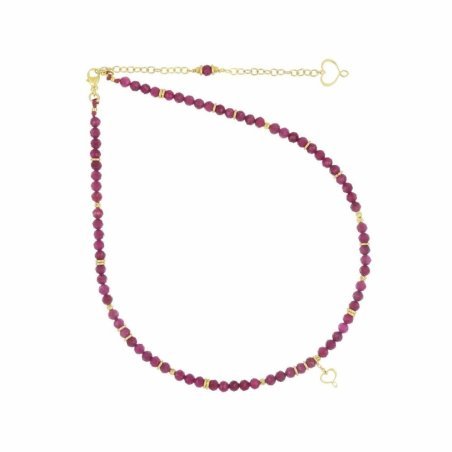 Il girocollo Pietre Di Rubino di Maman Et Sophie è realizzato in argento 925 con una galvanica in oro giallo ad alto spessore e resistenza. Questo elegante gioiello è adornato con pietre di rubino sfaccettato, alternate a elementi decorativi in argento, e presenta un mini cuore maman pendente al centro. La lunghezza del girocollo è regolabile da 35 a 44 cm, con un cuore Maman traforato all'estremità e una chiusura a moschettone.
