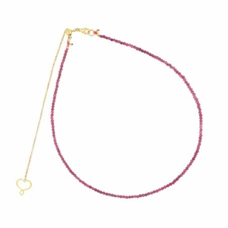 Il Girocollo Pentagramma Rubino di Maman Et Sophie è un elegante gioiello realizzato con un filo di pietre di rubino sfaccettato di 2 mm. La catena è in argento 925 placcato in oro giallo ad alto spessore e alta resistenza, garantendo una lunga durata e un aspetto lussuoso. Il girocollo è regolabile fino a 43 cm grazie alla piccola sfera scorrevole, permettendo una vestibilità personalizzata. Il design è completato da un cuore maman traforato all'estremità e una chiusura a moschettone per una maggiore sicurezza.