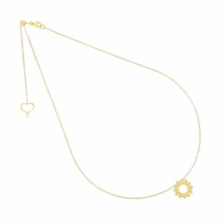 Il Girocollo Lumière Giallo di Maman Et Sophie è realizzato in argento 925 con una galvanica in oro giallo ad alto spessore e alta resistenza. Questo elegante girocollo presenta una fibbia a forma di sole centrale, con dimensioni di 1,3 cm x 1,3 cm, ed è regolabile fino a un massimo di 44 cm grazie alla piccola sfera scorrevole. Il design è completato da un cuore maman traforato all'estremità e una chiusura a moschettone, rendendolo un accessorio raffinato e versatile per ogni occasione.