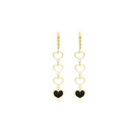 Scopri la coppia di orecchini a monachella di Maman Et Sophie, caratterizzati da un design elegante con quattro cuori maman pendenti, di cui l'ultimo smaltato in nero. Realizzati in argento 925 con una galvanica in oro giallo ad alto spessore e resistenza, questi orecchini offrono una lunghezza totale di 5,5 cm. Perfetti per aggiungere un tocco di raffinatezza al tuo look quotidiano o per occasioni speciali.