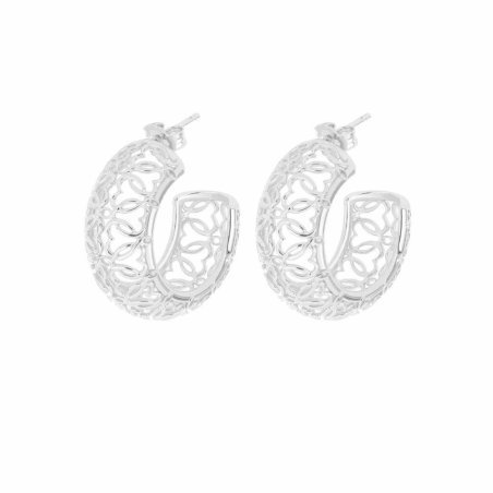 Eleganti orecchini a lobo in argento 925 con trama di cuori intrecciati.