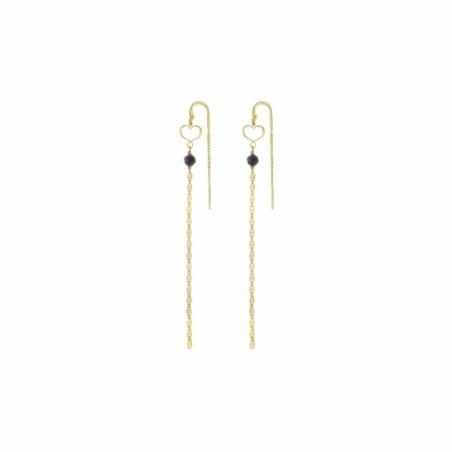 Questa coppia di orecchini lunghi è realizzata in argento 925 con una galvanica in oro giallo ad alto spessore e resistenza. Gli orecchini presentano un cuore Maman, una pietra di acquamarina scura sfaccettata e una catena pendente. La lunghezza totale dell'orecchino è di 9,5 cm, rendendoli un accessorio elegante e sofisticato per ogni occasione.