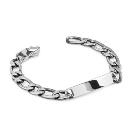 Bracciale a maglia grumetta in acciaio 316L con placca centrale liscia.