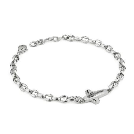 Bracciale in acciaio 316L con maglia grumettata e croce centrale impreziosita da zirconi incastonati.