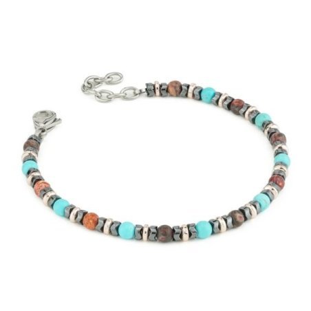 Il bracciale Abr773C di Boccadamo è un elegante accessorio maschile realizzato in acciaio inossidabile 316L, noto per la sua resistenza e proprietà anallergiche. Questo bracciale si distingue per le sue boule di turchese sintetico e diaspro rosso, che aggiungono un tocco di colore e originalità. Inoltre, i moduli squadrati di agata nera conferiscono un aspetto moderno e sofisticato. La lunghezza del bracciale è regolabile fino a 22 cm, garantendo una vestibilità comoda per ogni polso. La chiusura con moschettone assicura una tenuta sicura e pratica. Perfetto per l'uomo che ama distinguersi con stile.