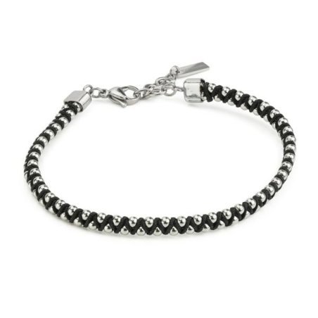 Bracciale in acciaio 316L con cordino di colore nero intrecciato a sfere lucide.