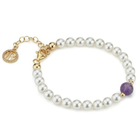 Bracciale in argento placcato oro giallo, con filo di perle medie, boules e cristallo ametista centrale.