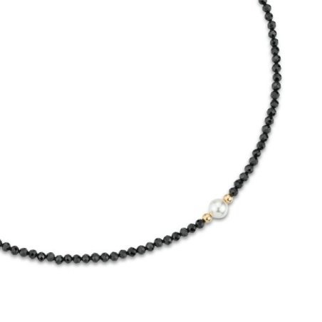 Girocollo in argento placcato oro giallo con filo di spinello, boules e perla centrale.