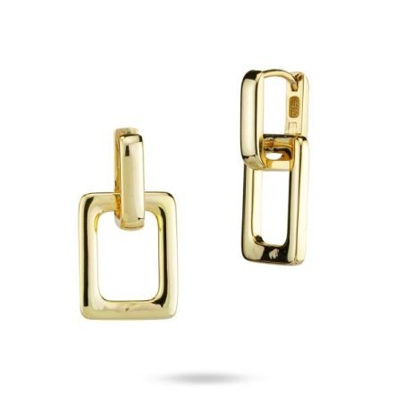 Orecchini a finitura lucida in argento placcato oro giallo con doppio pendente rettangolare arrotondato.