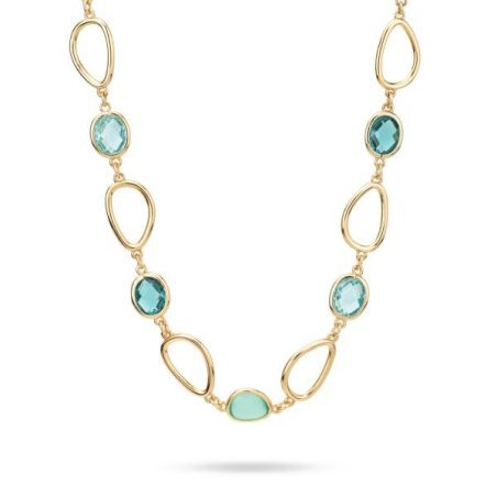 Girocollo placcata oro giallo con cristalli verdi tra moduli a goccia.