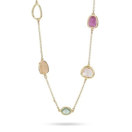 Collana lunga placcata oro giallo con cristalli colorati, elegante e raffinata.