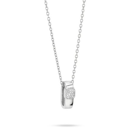 Girocollo rodiato con pendente ovale a fascia larga e quadrato in pavè di zirconi.