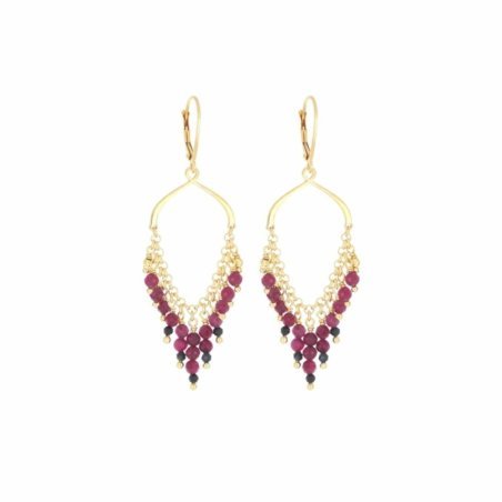Orecchini monachella con rubino e zaffiro, in argento 925 placcato oro.