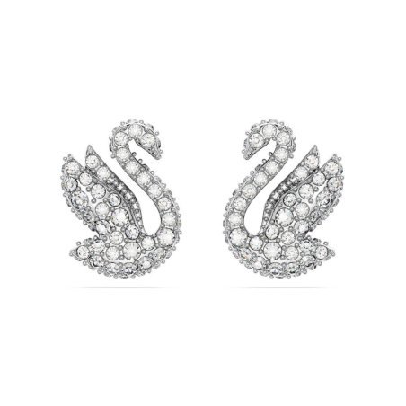 L’iconico Cigno Swarovski prende forma elegantemente in questo paio di orecchini a lobo. Realizzato con le ali in alto, pronto a spiccare il volo, il cigno è decorato con pavé di scintillanti cristalli trasparenti su una brillante placcatura rodio. Scegli questo gioiello per un delicato tocco di ispirazione quotidiana.