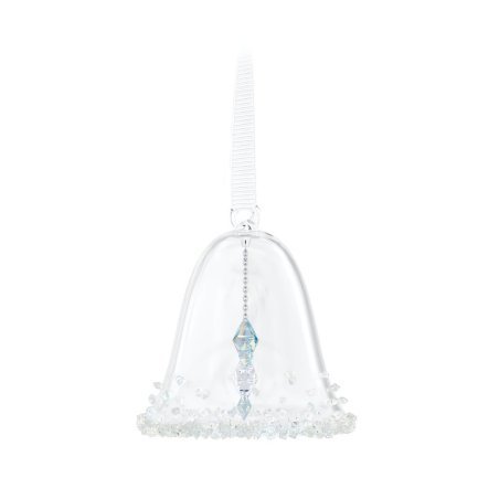 Per la prima volta, Swarovski ha realizzato una versione in miniatura della sua tradizionale decorazione campanella. Il design in vetro immacolato è rivestito da circa 300 piccoli cristalli, mentre l’interno contiene un battaglio di stelle realizzato con 108 sfaccettature e l’affascinante effetto Aurora Borealis. La creazione è sospesa su un nastro gros-grain bianco, collegato ad un cappuccio in metallo in tonalità argento, che contribuiscono a creare una perfetta scenografia di delicata bellezza a casa tua. Oggetto decorativo. Non è un giocattolo. Non adatto ai bambini di età inferiore a 15 anni.