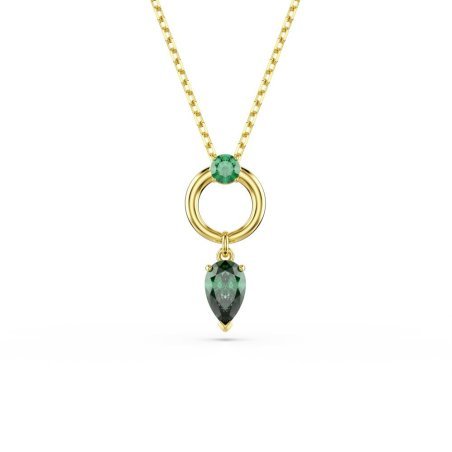Il Pendente Mesmera di Swarovski è un gioiello che unisce colore e raffinatezza, ideale per l'uso quotidiano. Questo affascinante pendente presenta una Swarovski Zirconia taglio Pear di colore verde, incastonata in un cerchio placcato in tonalità oro. Al centro, una Swarovski Zirconia taglio Round aggiunge ulteriore brillantezza. La catena è dotata di un meccanismo scorrevole che permette di regolare facilmente la lunghezza del pendente, garantendo un comfort ottimale. Con una lunghezza regolabile tra 38 e 45 cm e una decorazione di 2.2 x 1 cm, questo pendente è perfetto per chi cerca un accessorio elegante e versatile.