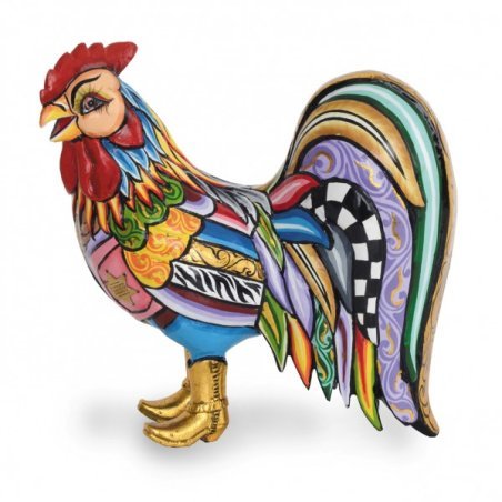 Hahn Pat, Stehend L di Toms Drag, un gallo sceriffo in Marmorin dai colori arcobaleno.